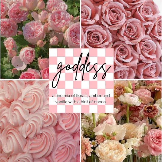 - Goddess: A fine mix of florals, amber and vanilla with a hint of cocoa.